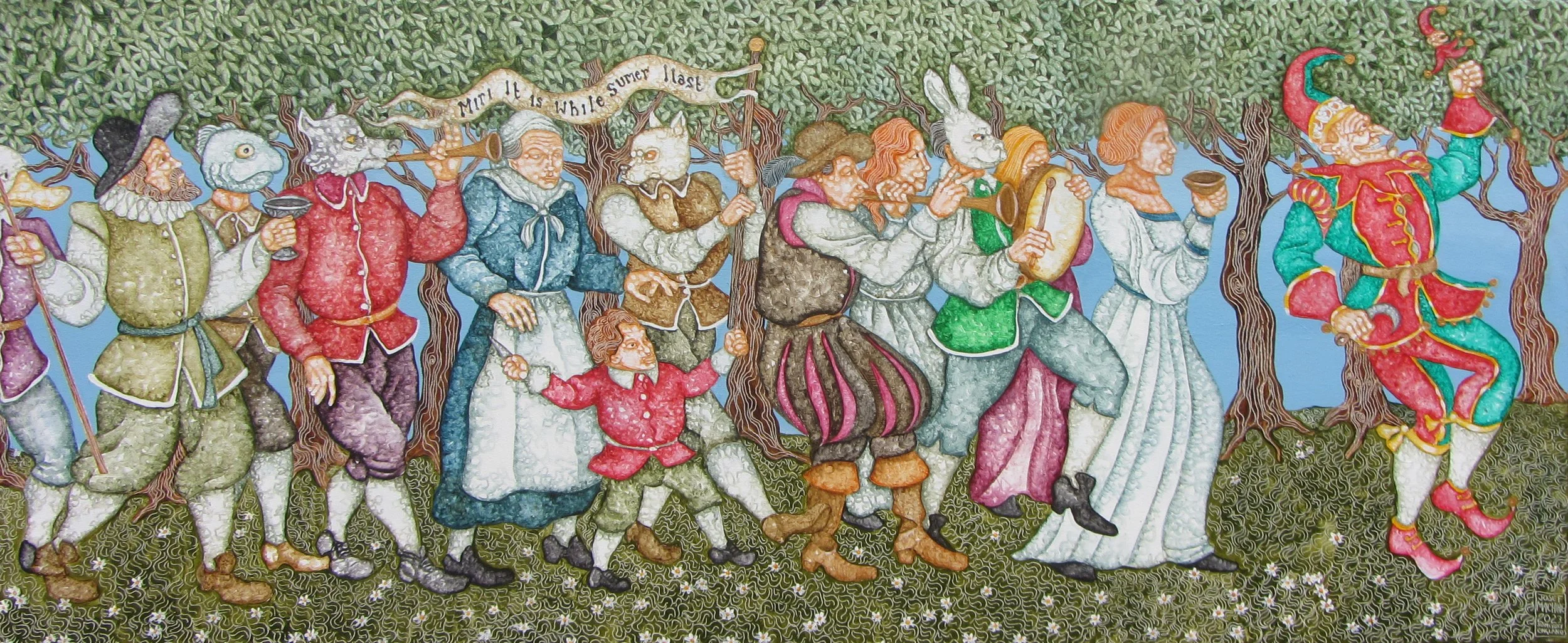 Characters/Archetypes: The Green Man, The Goddess, The Divine King/Queen, The Horned God, The High Priest, The Druids, The Alchemist, The Rival Alchemist, The Masked Congregation, The Scapegoat, The Fool, Punch, The Flower Maiden, The Woodwose, The Mermaid, The Hermit, The Witch/Wise Woman, The Devil, The Hobby Horse, The Pilgrim, Black Shuck.